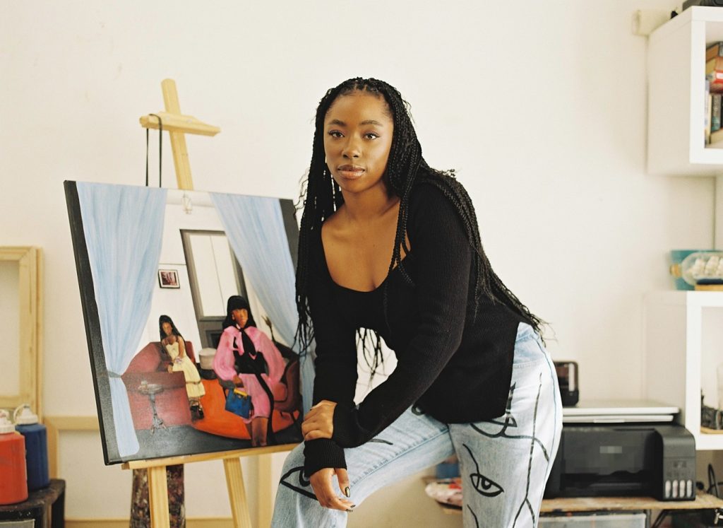 Cinthia Sifa Mulanga is an independent contemporary artist from the Democratic Republic of the Congo but whose practice is deeply rooted in her experiences growing up in South Africa. After her studies, Mulanga became preoccupied with painting and collage, mediums that have come to define her practice. They serve a dual interest in engaging with the history of western art and popular culture thus delving into African art. The focus of Mulanga’s practice is on the representation of Black women. Through their depiction, she looks to engage with different personas, emotions, or states of mind.